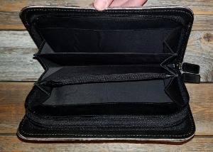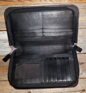 Large organizer wallet has to separate zippered compartments with lots or card slots and room for everything